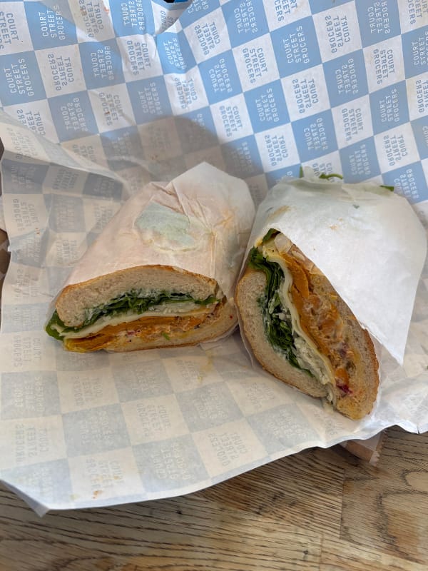 Happy Saturday. I finally made it down Court St. to try Court Street Grocers’ Vegitalian that the New Yorker raved about a few weeks ago. It’s not cheap, but the good news is the sandwich is huge and you can enjoy it for lunch and dinner!